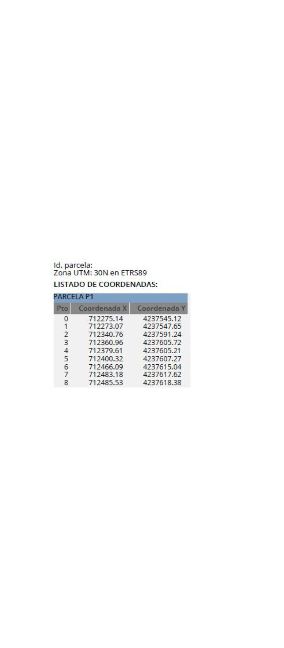 En la imagen 2, parte de las coordenadas georreferenciadas de la parcela,  numeradas por puntos y situadas espacialmente en el eje X y el eje Y.