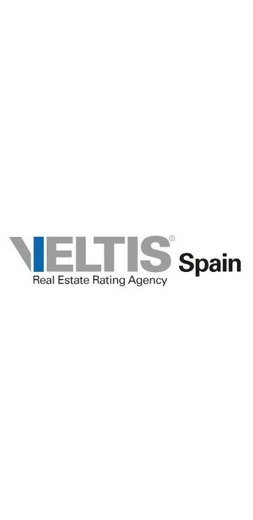 En la imagen 1, el logo de la empresa Veltis, la primera empresa europea que analiza los riesgos que puede tener una promoción inmobiliaria o un desarrollo urbanístico.  Proporciona información sobre cómo afectan los riesgos a la cartera inmobiliaria a través del ADN inmobiliario.
